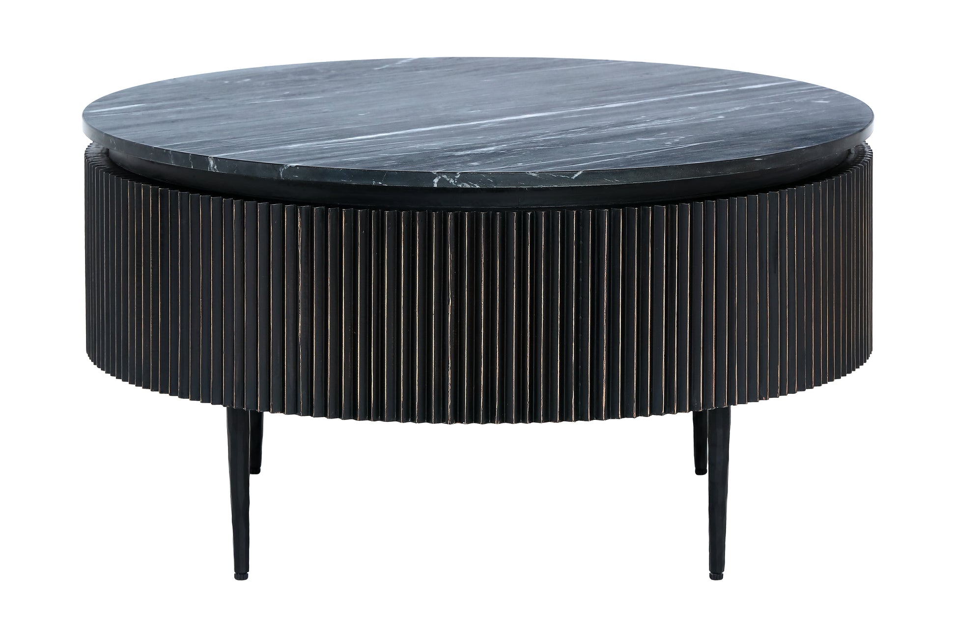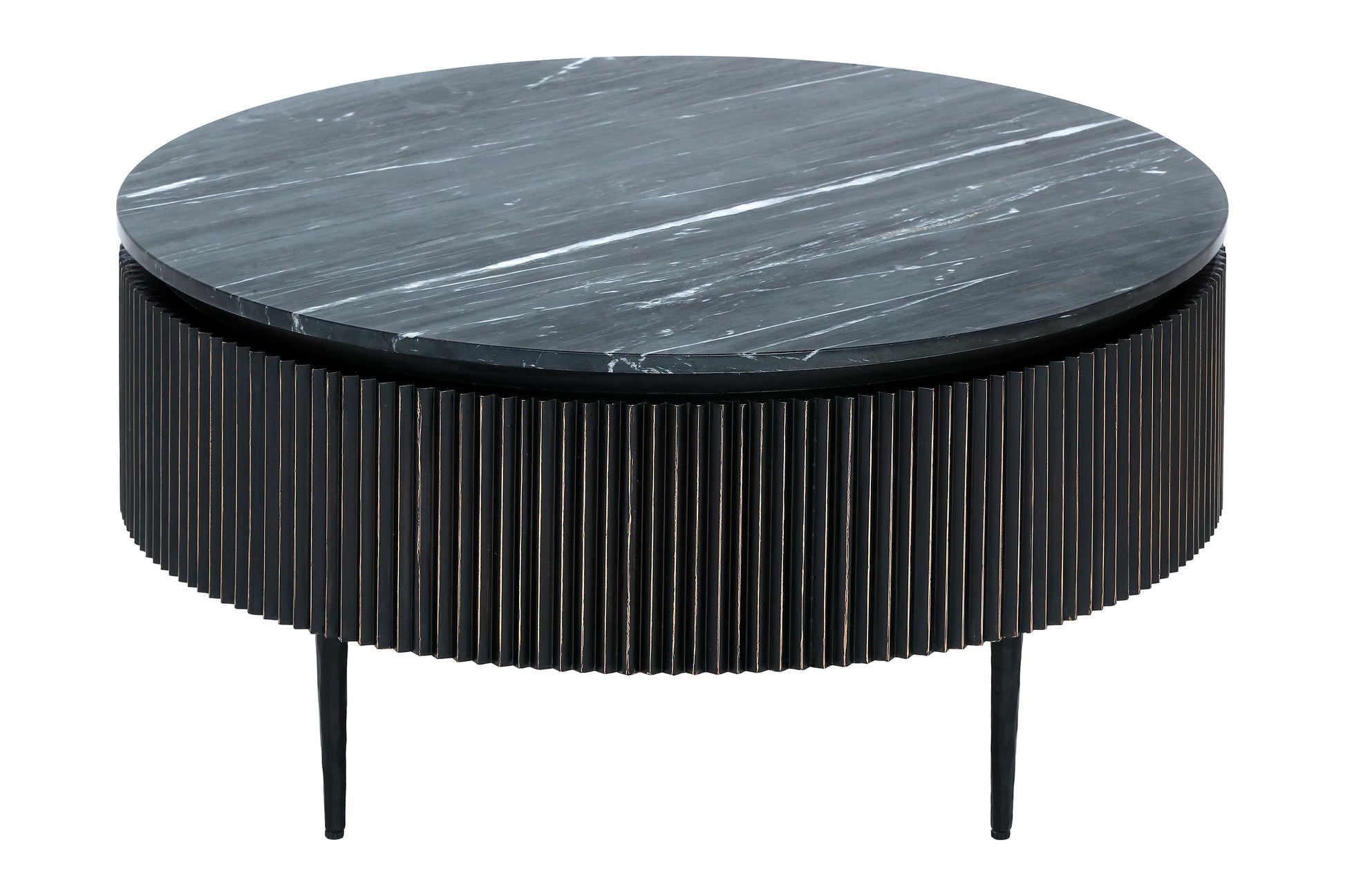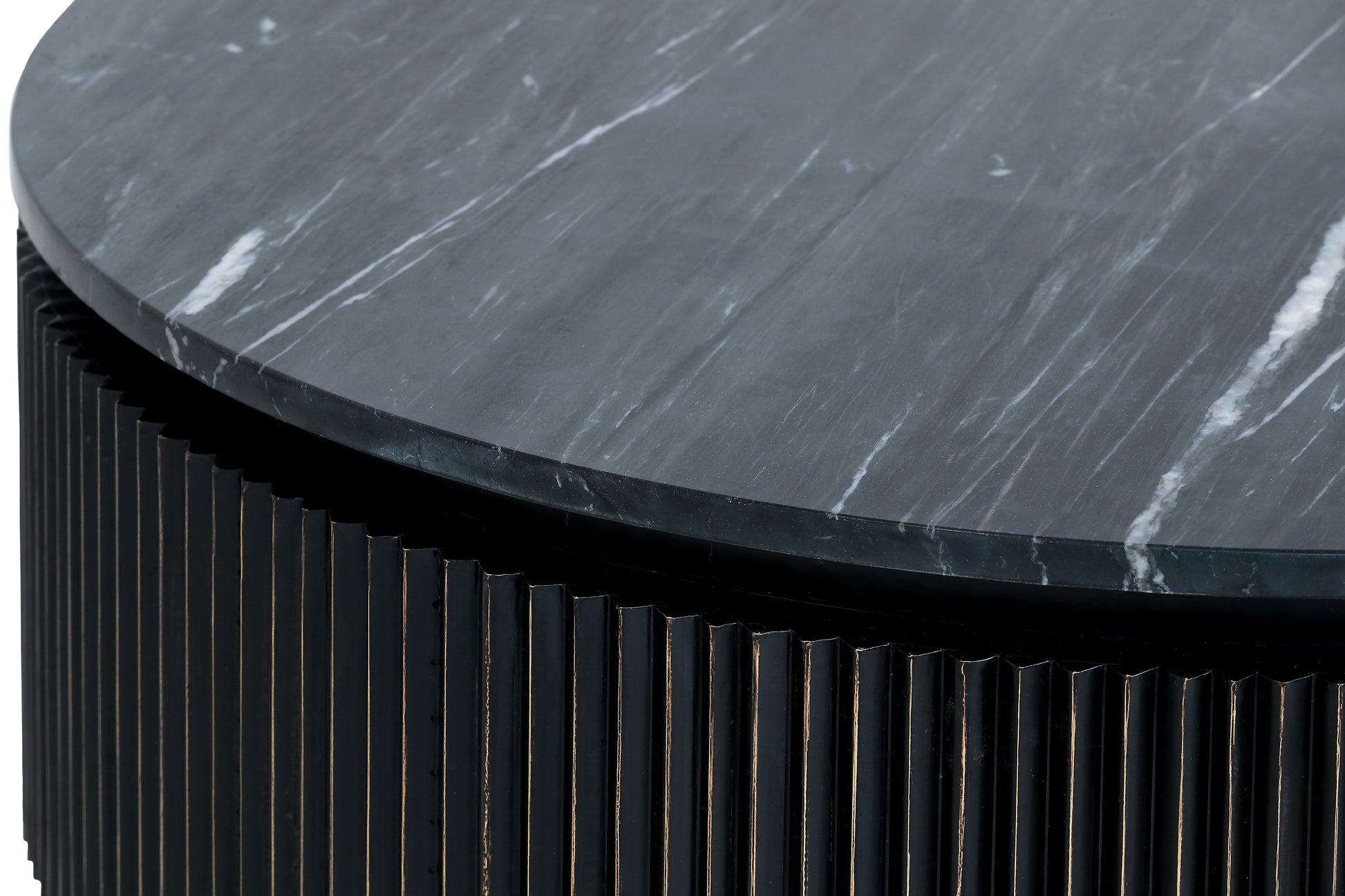 An embodiment of Art Deco allure, the Gatsby Coffee Table is crafted with engineered wood, intricate metal detailing, a luxurious marble top, and robust iron legs, offering both visual drama and lasting durability. The dark antique finish, combined with fluted paneling, lends a refined yet bold presence to any interior. Designed for versatility, this table is perfect for elevating your living space, whether as a serving hub, a display platform for statement décor, or an anchor for cozy gatherings. Complement its opulence with a sleek metallic tray, crystal accents, or a plush area rug to create a high-end, inviting ambiance.
