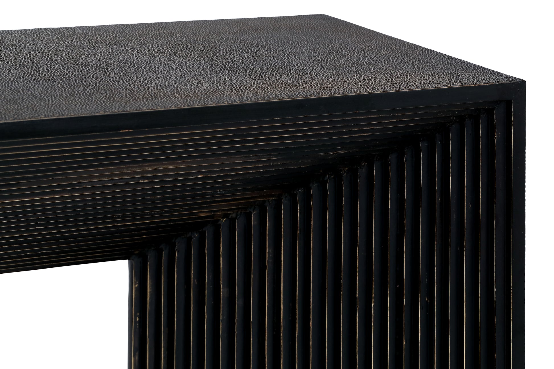 The Gatsby Console – Dark Antique is a refined blend of Art Deco influence and industrial sophistication. Finished in a dark antique metal, its tiered linear design creates a sense of depth and structure, embodying understated luxury. The textured surface enhances its vintage appeal, making it a perfect addition to hallways, entryways, or living spaces. With its bold yet timeless character, this console serves as a statement piece that complements both contemporary and classic interiors with effortless elegance.