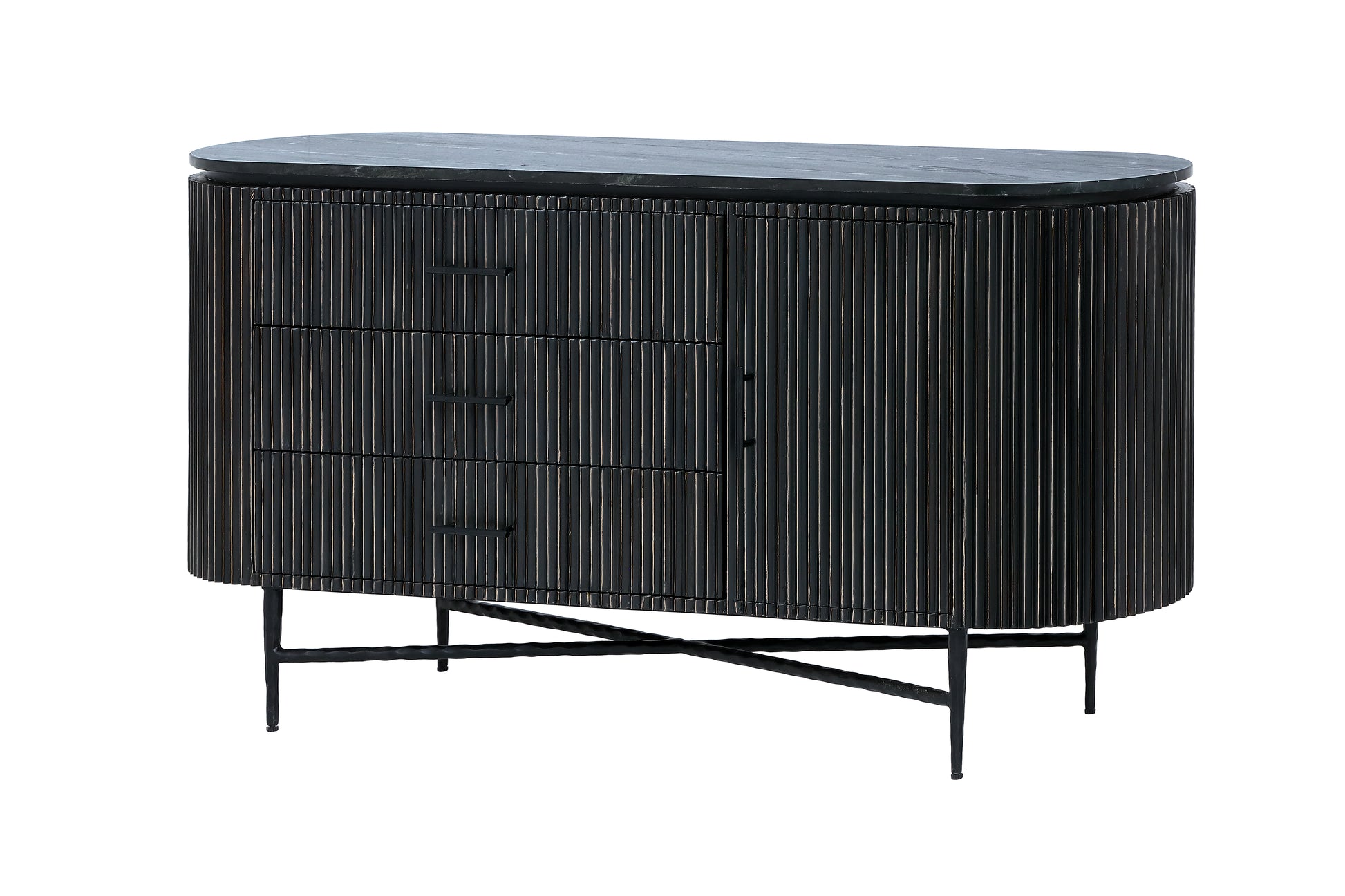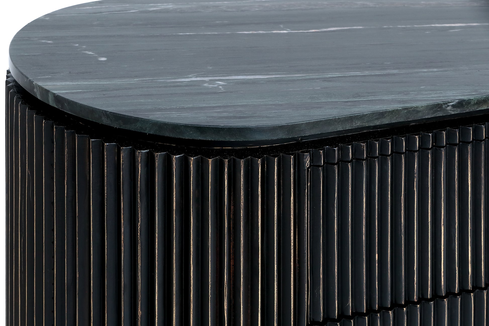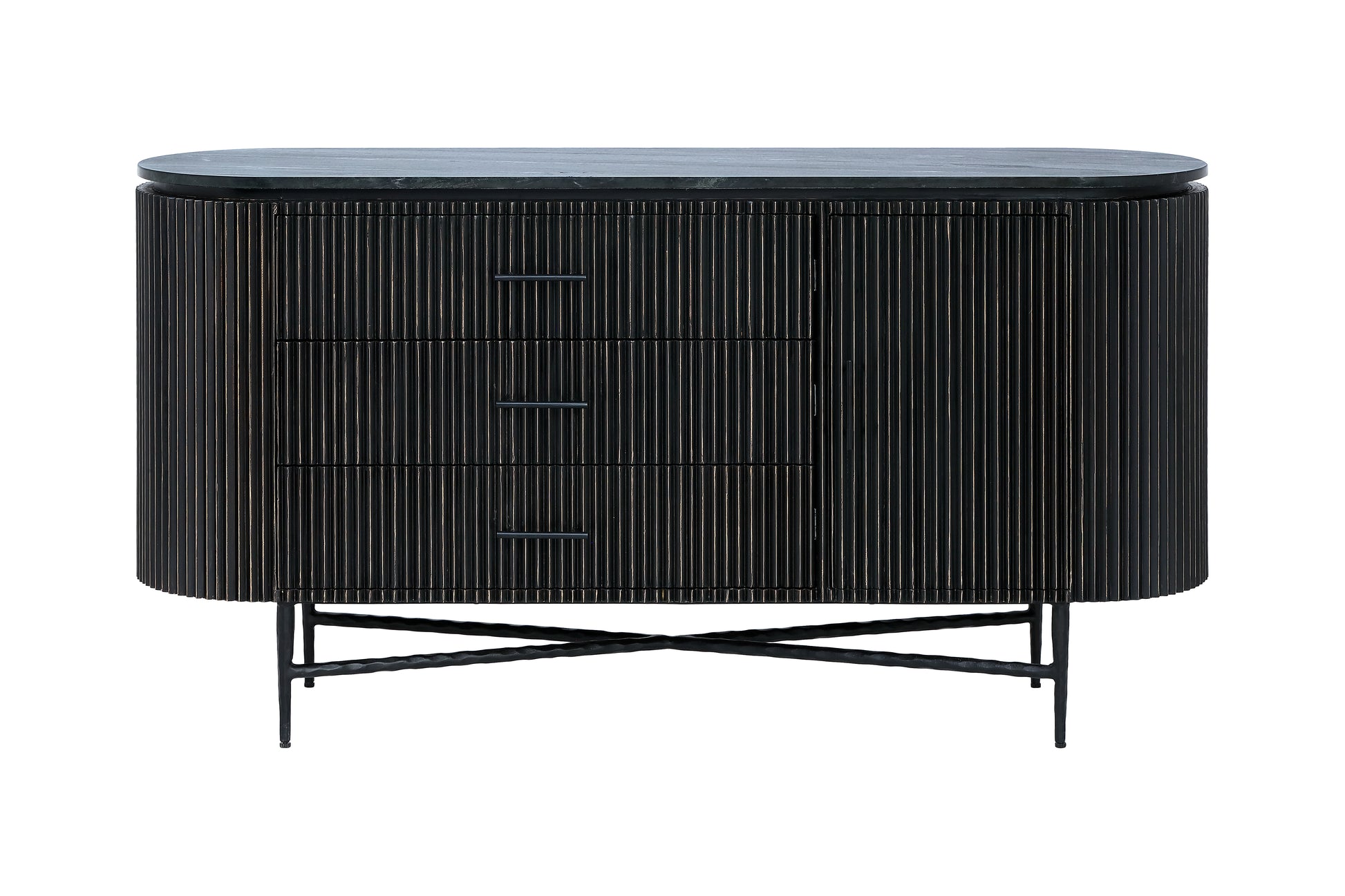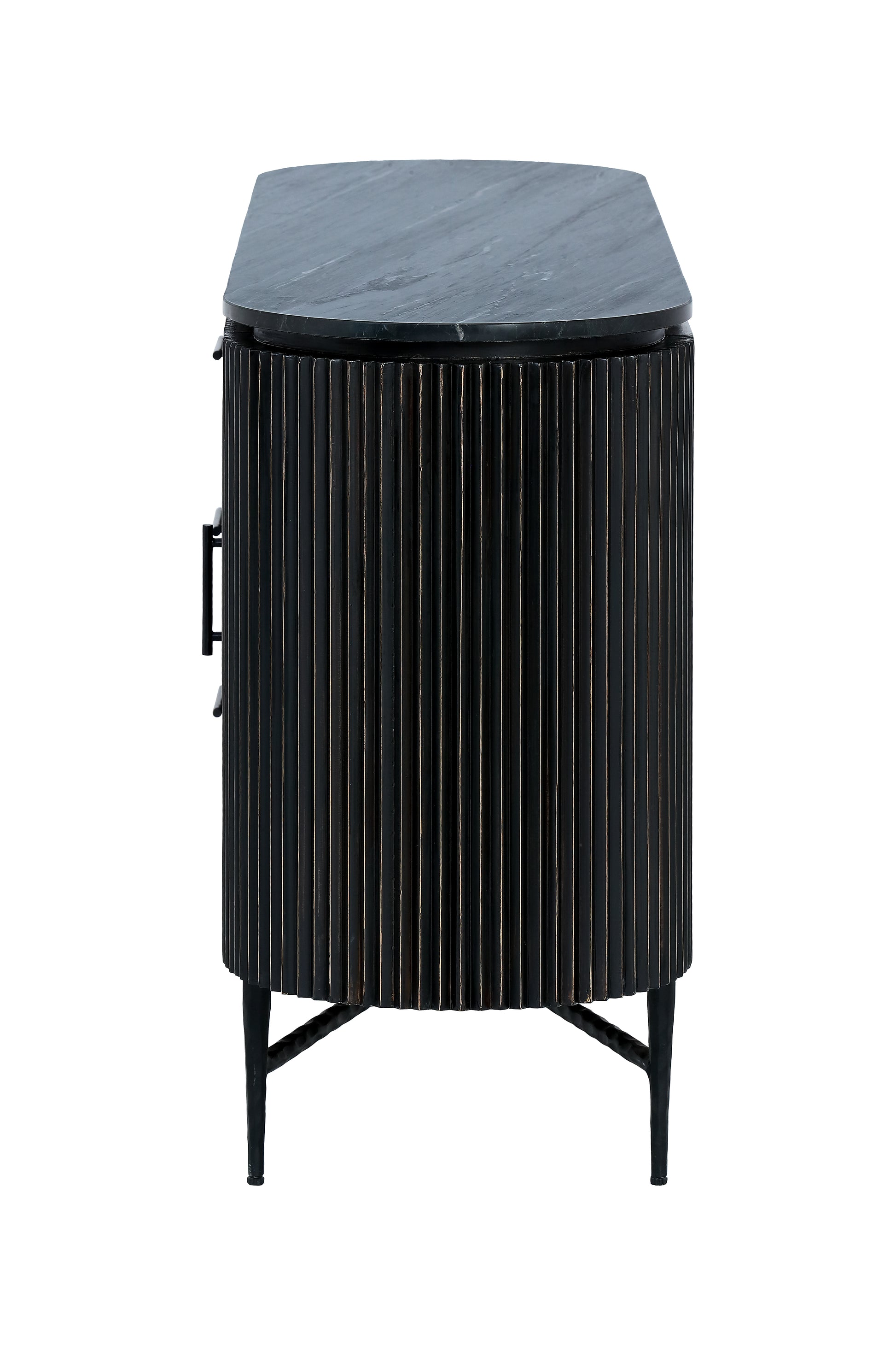 Exude timeless elegance with the Gatsby Credenza, a perfect blend of classic charm and contemporary cool. Its luxurious design, featuring sleek vertical lines and a curved silhouette, adds a touch of extravagance to any space. Ideal for those who appreciate refined aesthetics, this piece offers generous space to keep your essentials organized and stylish. Perfectly complements dark-hued walls or neutral backdrops, making it a striking addition to your decor.