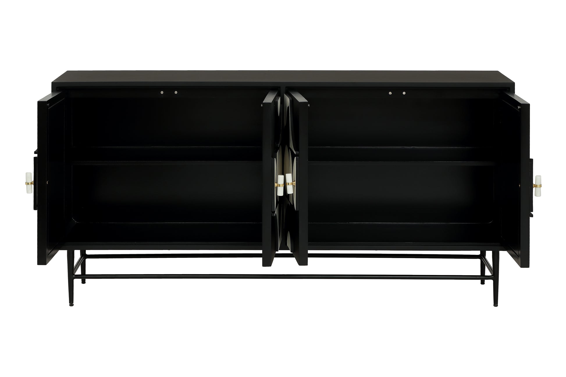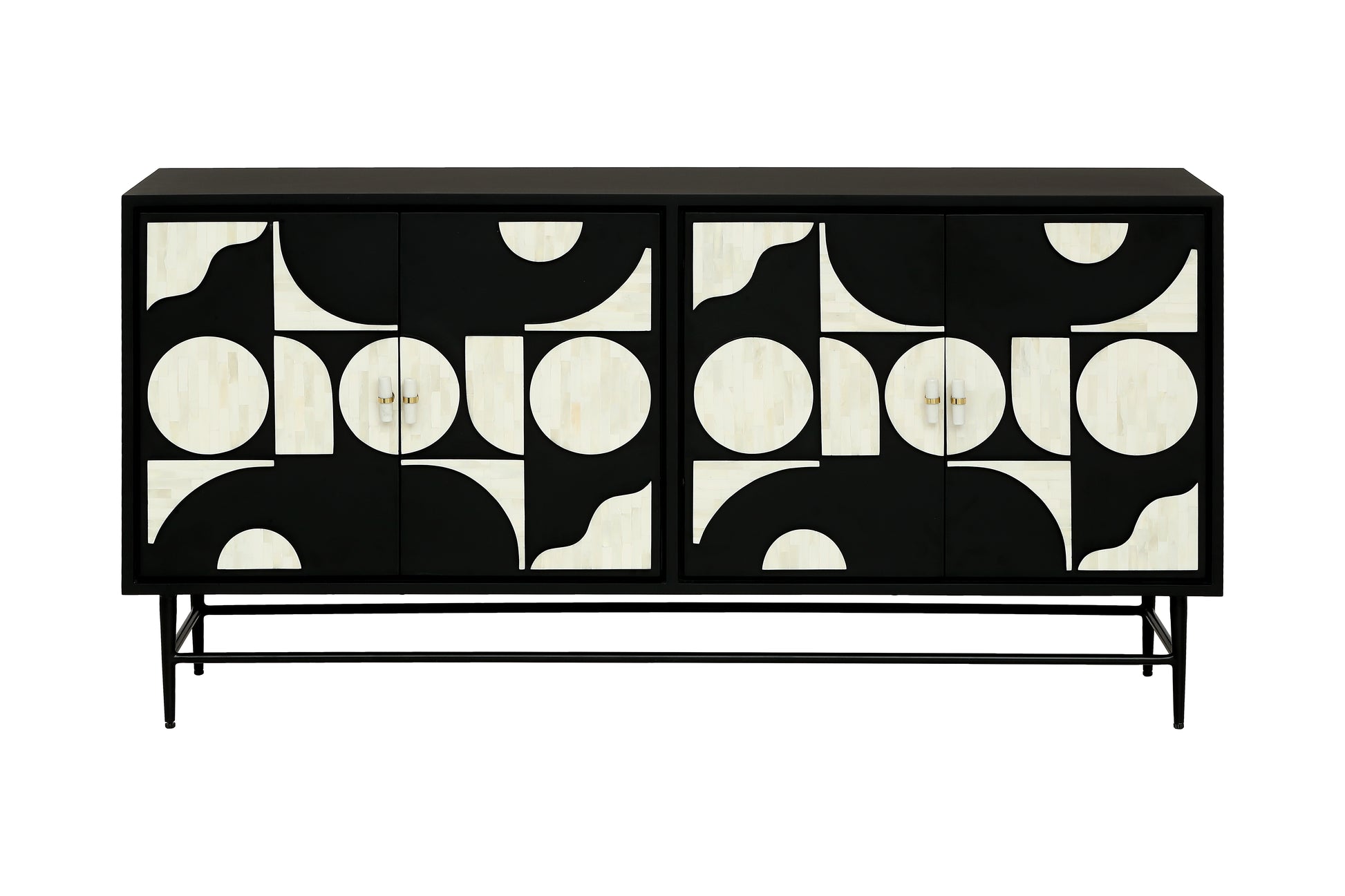 Bring a touch of modern sophistication to your space with this urbane and elegant Graphic Credenza. Featuring a striking geometric abstract design in contrasting tones, this piece effortlessly blends contemporary artistry with functionality. Its sleek lines and bold patterns make it a statement addition to any living room, dining area, or hallway. Perfect for those who value both form and utility, this credenza offers ample storage while elevating the aesthetic of any space.