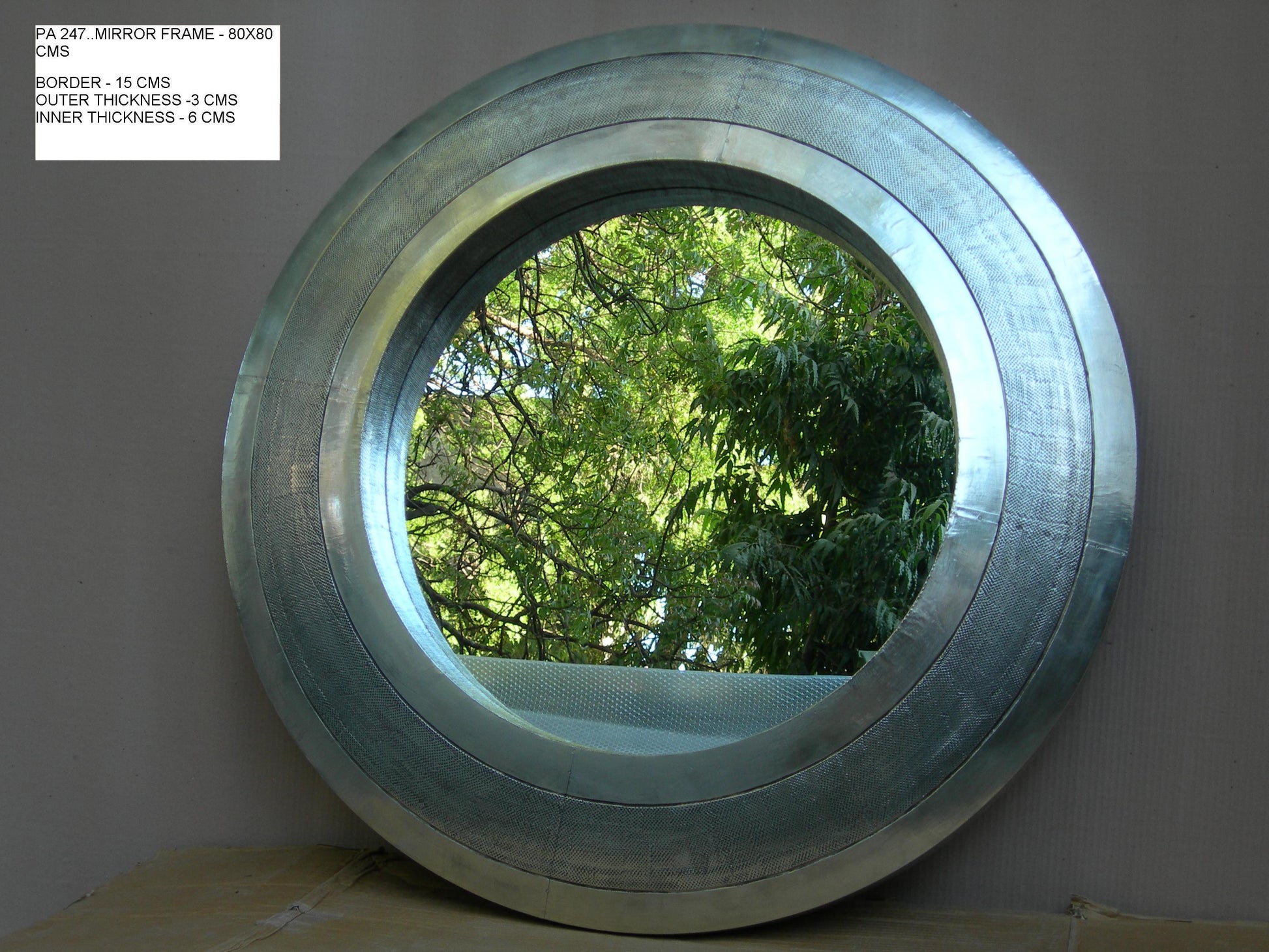 The Tapered Mirror Frame offers a balanced blend of modern proportion and handcrafted detail. Its bold circular form is wrapped in brushed metal cladding, softly textured to catch light while maintaining a refined, matte presence. Subtle contouring along the frame’s edge introduces dimension and depth without overpowering the composition.