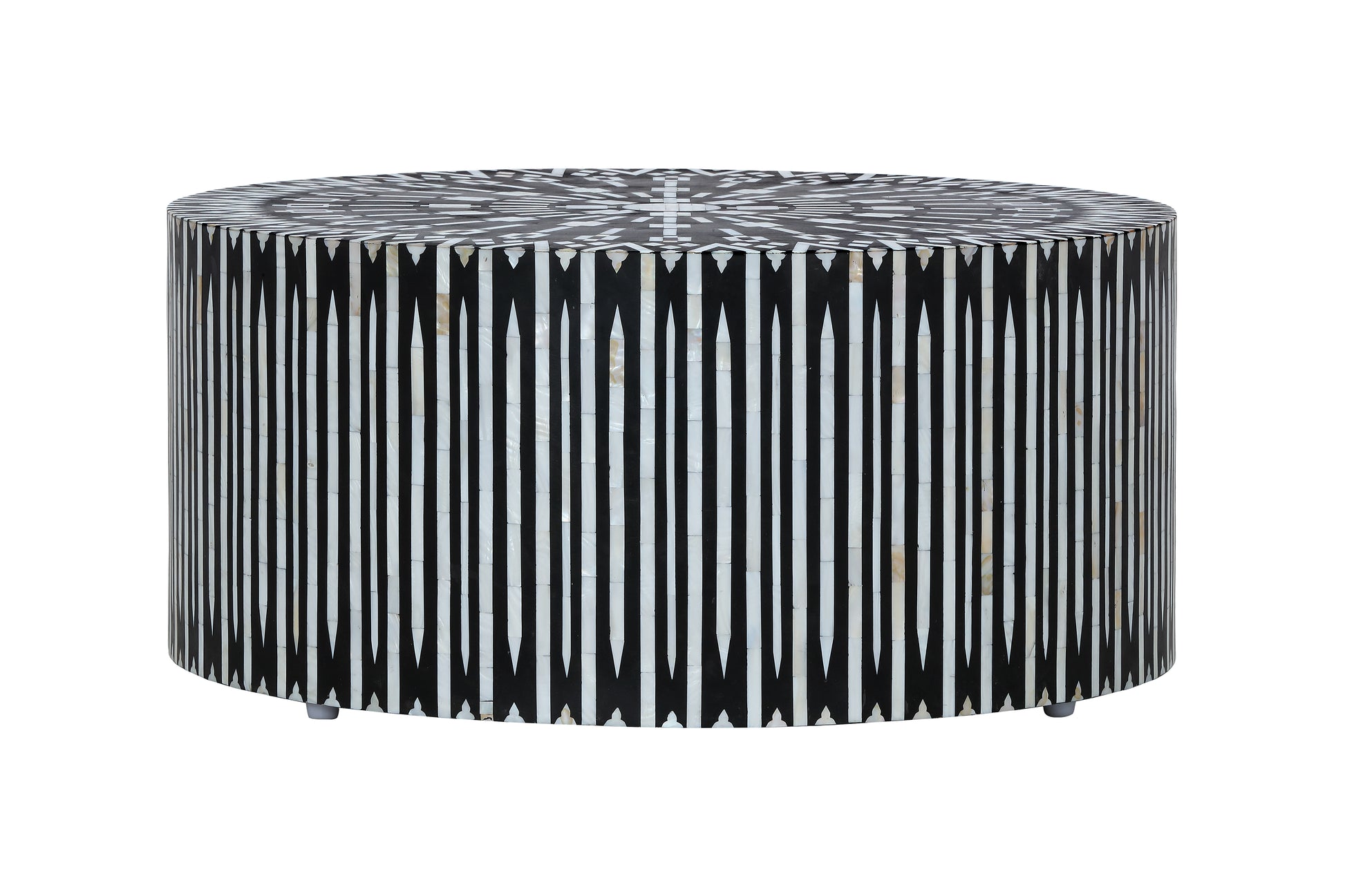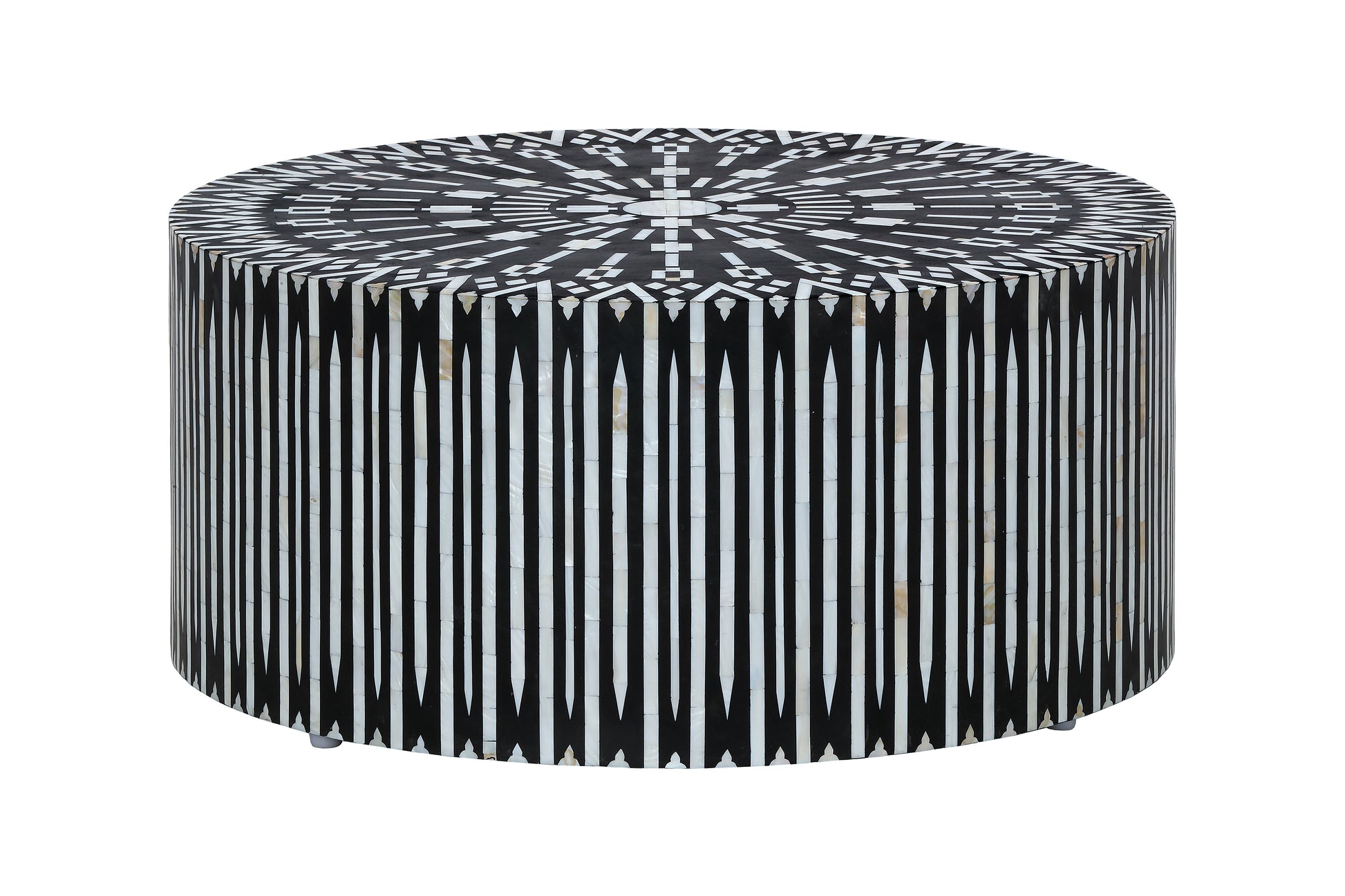 The Targua Coffee Table is a masterful expression of craftsmanship, featuring an intricate mother-of-pearl inlay that forms a mesmerizing geometric motif across its engineered wood surface. Its bold contrast and rhythmic pattern exude elegance, making it a captivating focal point in both contemporary and classic interiors. Style it with plush rugs and sculptural décor for a refined aesthetic or let it stand alone as a statement piece in a minimalist space. Whether anchoring a seating area or enhancing a luxury lounge, the Targua Coffee Table seamlessly merges artistry with modern sophistication